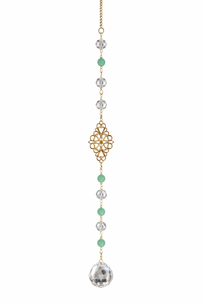 Handcrafted with genuine crystal beads and a radiant prism drop. Hang in direct sunlight to fill your space with rainbows and high-vibe energy.